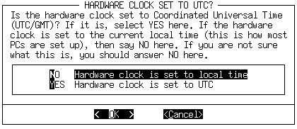 This subsection asks if your computer's hardware clock is set to Coordinated Universal Time (UTC or GMT). Most PCs are not, so you should probably say no.