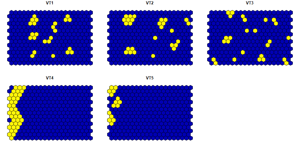 #> ..- attr(*, "names")= chr [1:5] "VT1" "VT2" "VT3" "VT4" ...LandComp(x = hexagonal_data, aggregation_steps = 0:1)