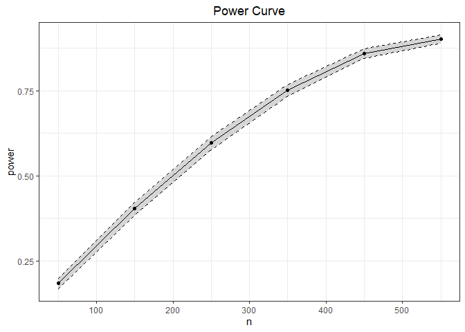 ## [1] 0.001231514To evaluate the prospective power of this test requires passing the