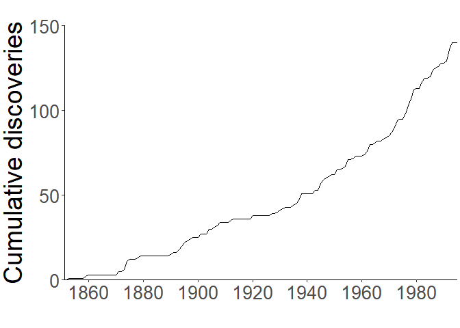 ylab("Cumulative discoveries") + theme(axis.title.x = element_blank())