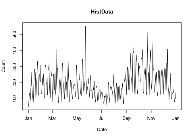 cranDownloads(packages = "HistData", when = "last-week")> date count cumulative package