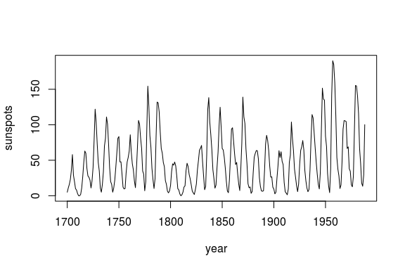 df = data.frame(yr = as.numeric(time(sunspot.year)),