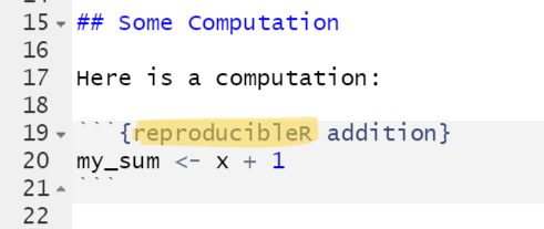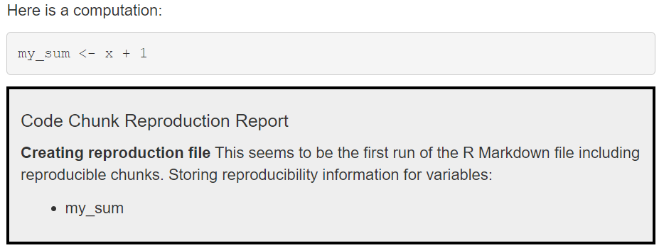 chunks. Each code chunk will render a reproducibility report. One chunk