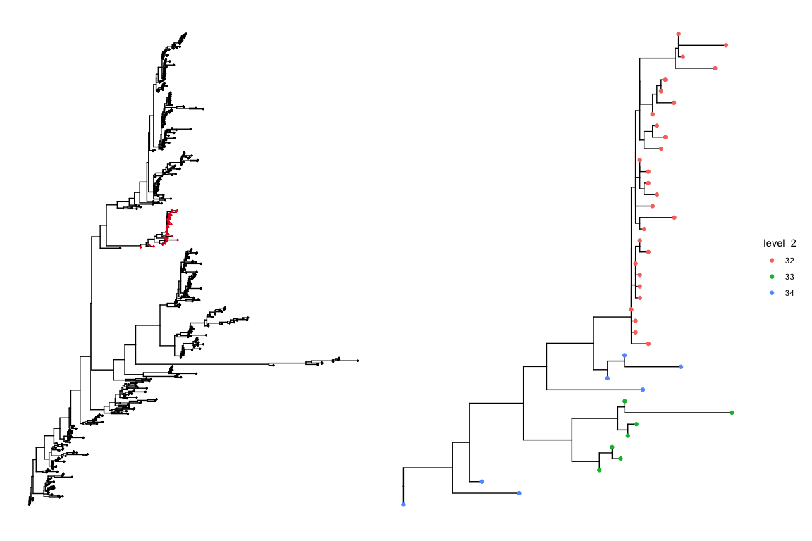 gg <- gg + geom_tiplab(aes(label = `level 2`), size = 1, offset = 1)