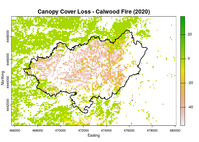 main = "Canopy Cover Loss - Calwood Fire (2020)",