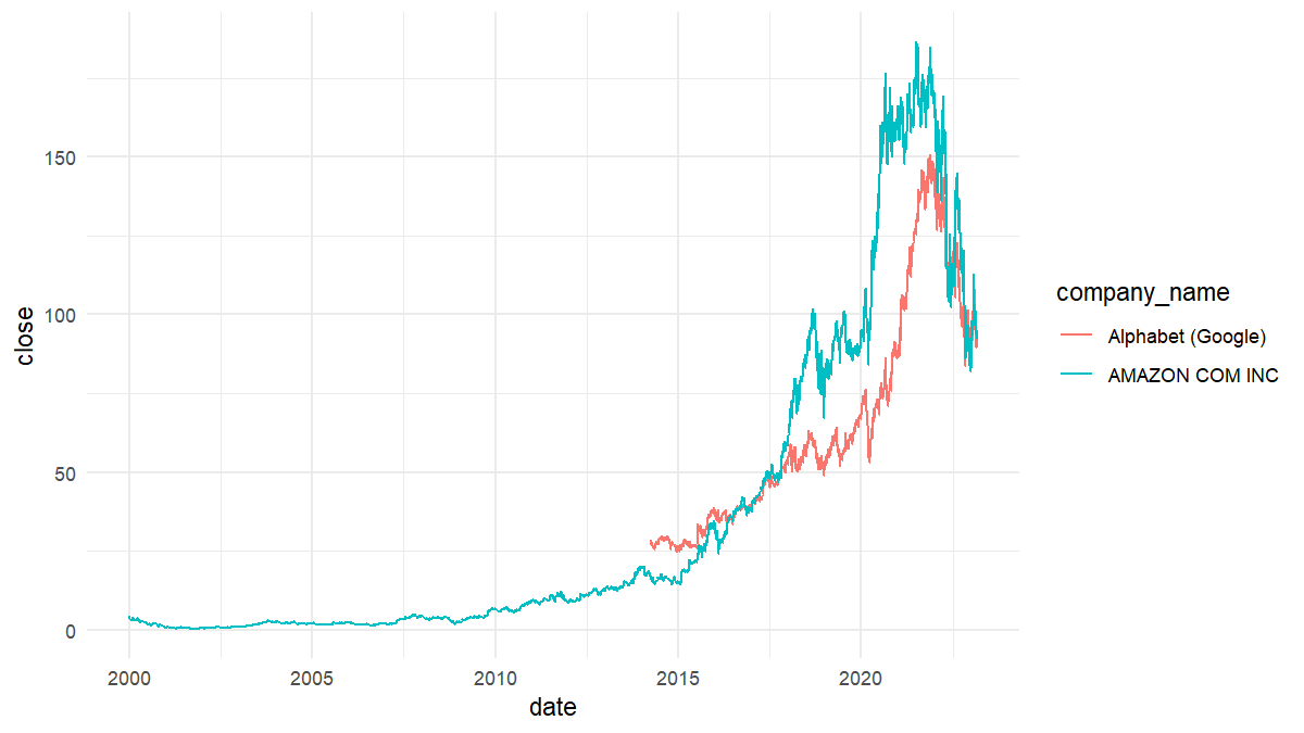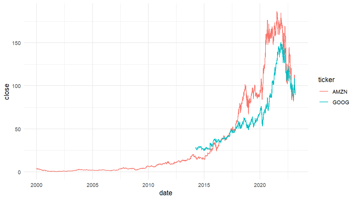 tickers <- c("AMZN", "GOOG") # Amazon, Google