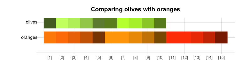 main = "Comparing olives with oranges")