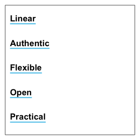 uline(labels = c("Linear", "Authentic", "Flexible", "Open", "Practical"),