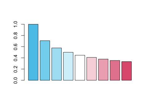 barplot(1/sqrt(1:9), col = my_pal)